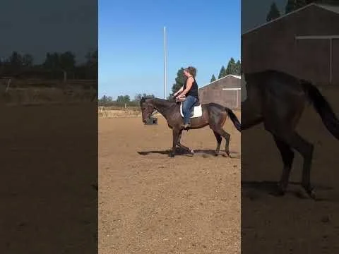 Trot and canter, right lead. Started in the round pen but has been trail ridden.