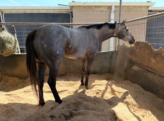 Born without a bottom jaw (see photo in comments), does not stop her from eating, not even grass rooted in the ground or from A hay net. Her tongue does not hang out. She rides in a normal bit. 1 start out on the track placing last. Owners are getting out of racing and she was their last. Beautiful roan coloring, sweet as pie, gentle. By Clubhouse Ride out of a Lemon Drop Kid. Sound and could go in any direction.
