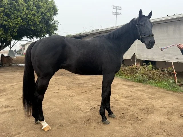 Unplaced in 1 start by Justify out of a Candy Ride mare. Beautiful stunning “black” gelding. Beautiful mover, has wind puffs in ankles, ultrasound and X-rays unremarkable, is sound and can go onto a new career. Would like to move him on asap.