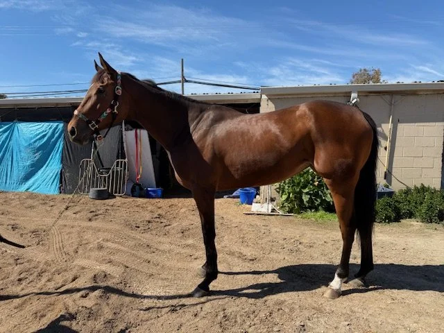 Unraced. Has had many track workouts, racing connections state she isn’t fast. Is naturally more of an uphill way of moving. Sweet, sane, quiet, easy to work with and is not hot at all. Cast herself in the stall the other day hence the swollen left hind ankle, should resolve in a few days with some care. The stable will be working on that.