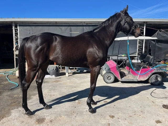 Lion Heart as grandsire on top, one you don’t see too often and an old line Good Journey falls on the bottom. Says to be super sweet, super gentle, easy to work with and gallop on the track. Just a good fall in line type citizen who is looking to please. Would be an easy restart and good for a ammy or junior to bring along with a bit of help. 30 starts out on the track and now ready for his second career.