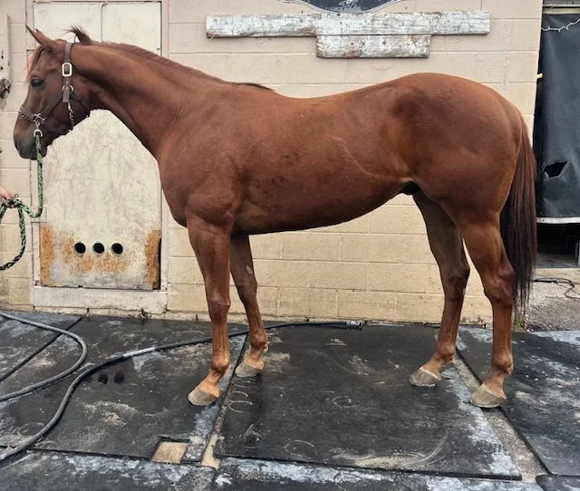 18 starts out on the track, racing connections state he’d make one heck of a barrel racing prospect or even polo horse for his quick early speed and his game go-getter type of attitude. Would be best for someone who wants to put him to work and use his talents. He’s got such a cute face and beautiful neck. What a cute guy.