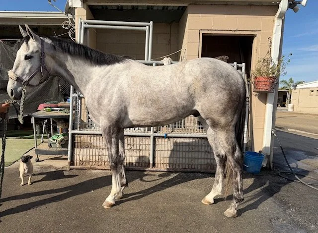 Check out his jogging video. Floaty free in the shoulders movement. By Smiling Tiger out of a Graydar mare. Had 1 start and finished back of the pack. Sweet, curious, easy going, no fuss kind of guy. Recently had teeth done, wormed, currently barefoot.